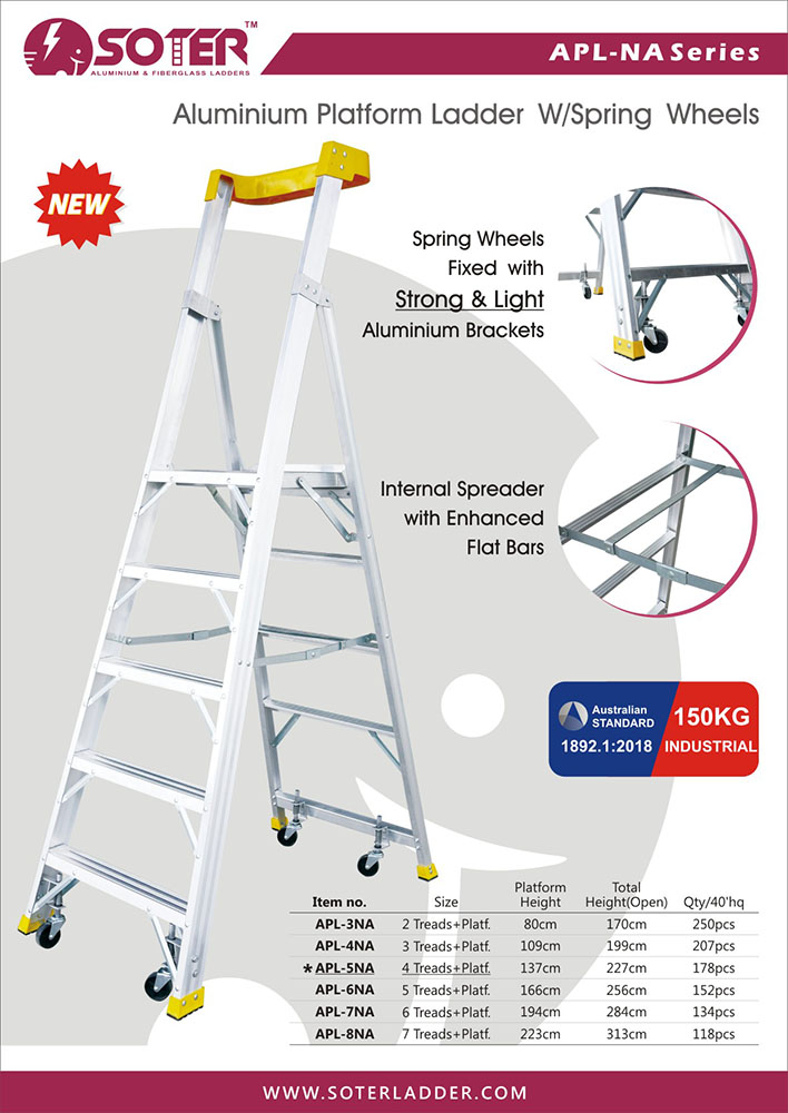 (AS/NZS)Aluminum Platform Ladder W/Spring Wheels